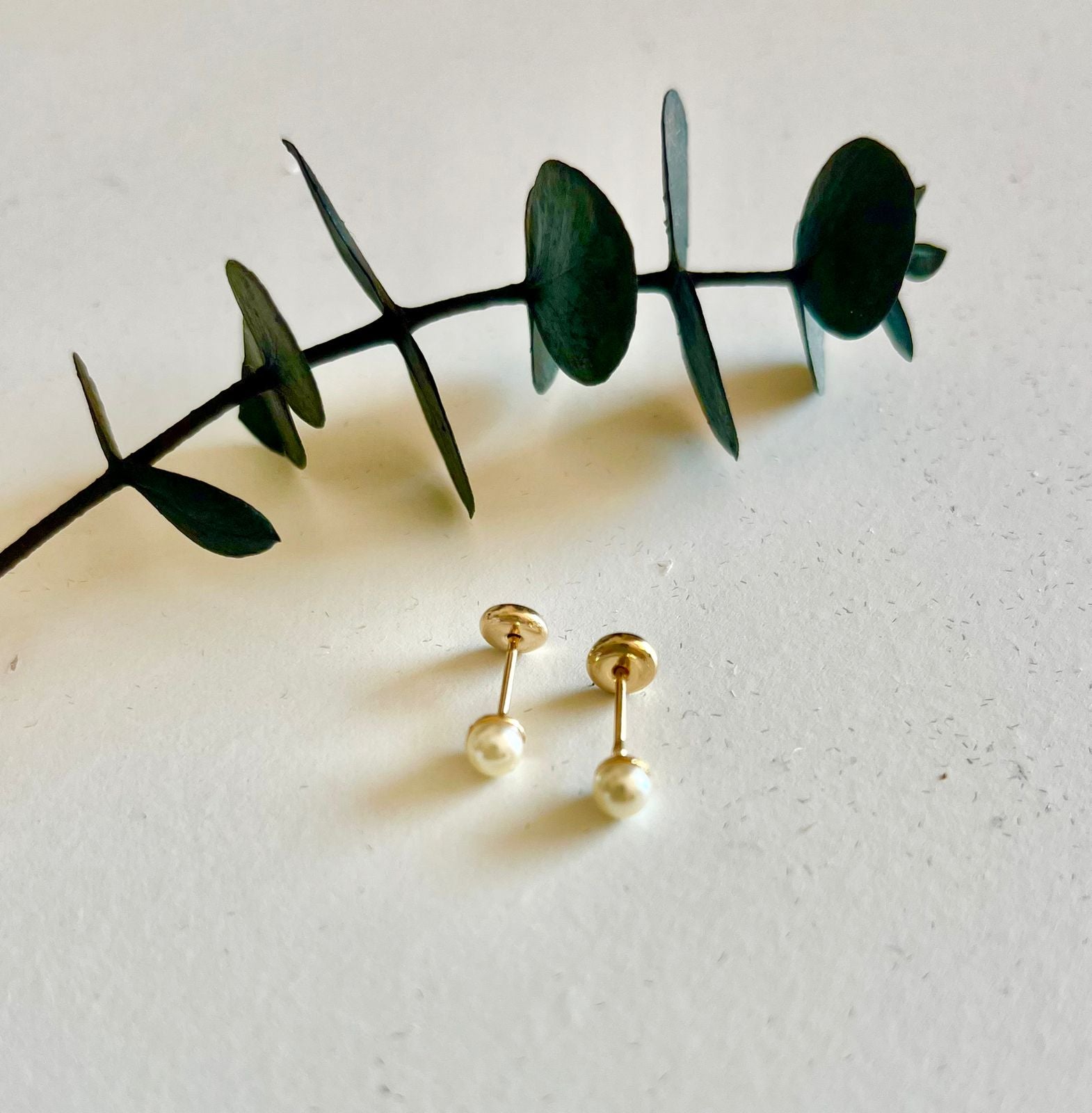 Abridores bañados en oro 18 quilates de Perla Sintética 4mm. tuerca tope a presión