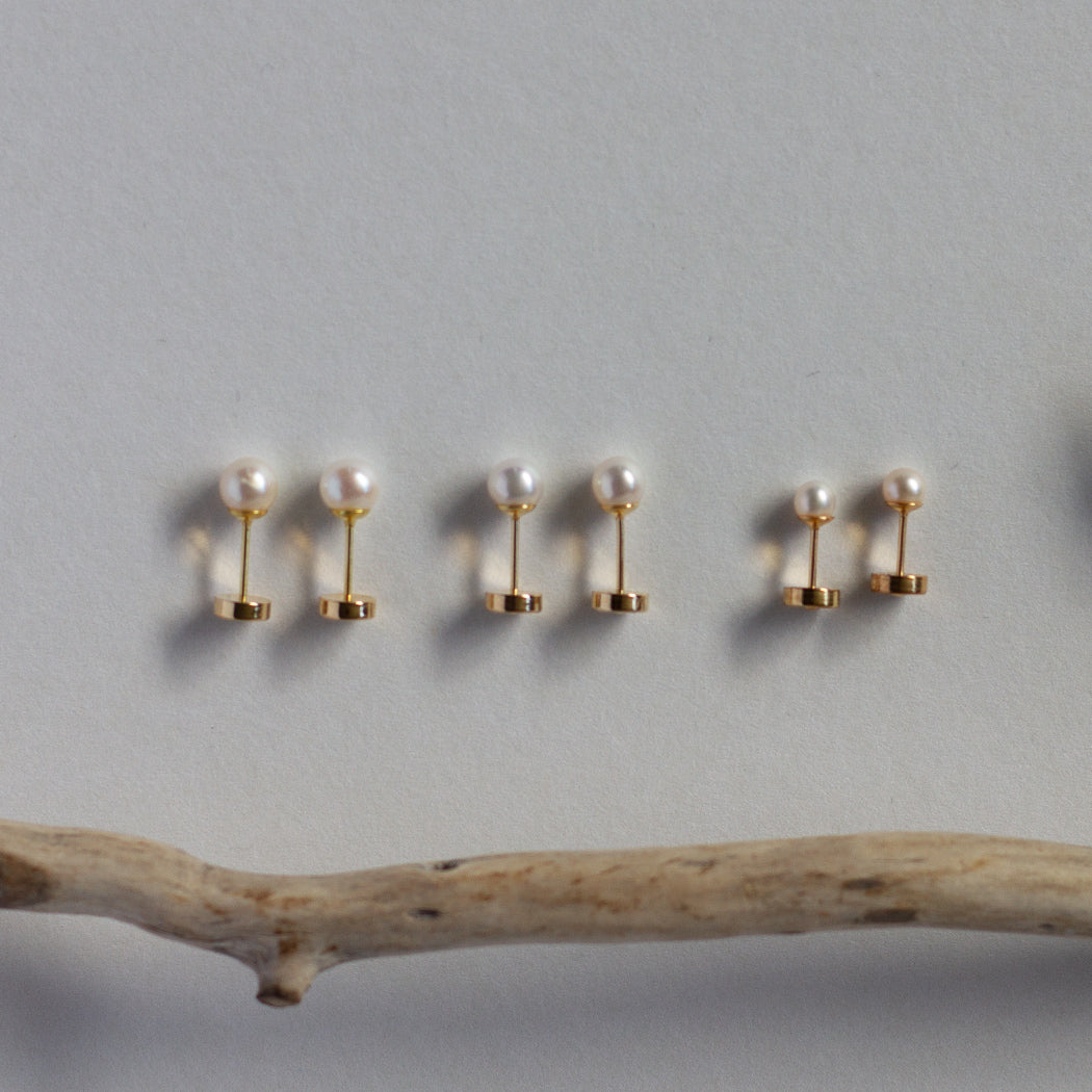 Abridores de oro 18 quilates y Perla Cultivada 4.5mm. Tuerca con tope a presión.