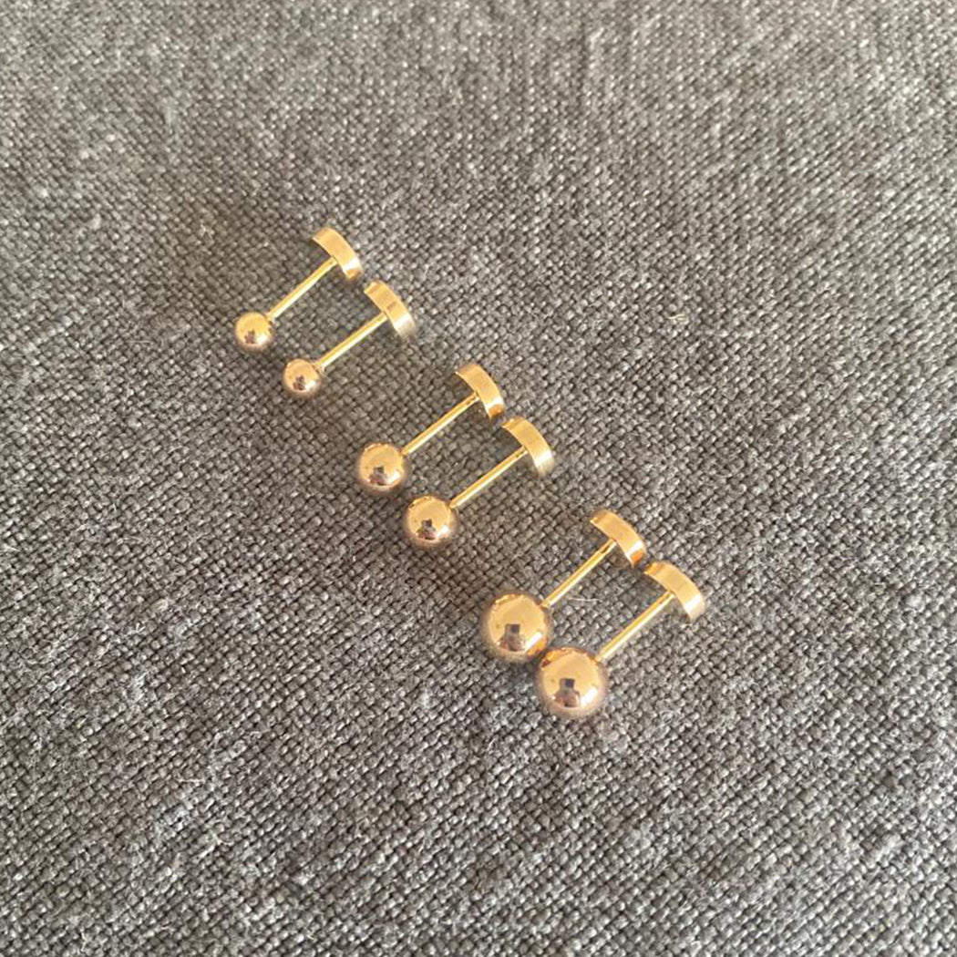 Abridores pelotita de 5mm con tuerca tope a presión. Bañadas en oro de 14 kilates